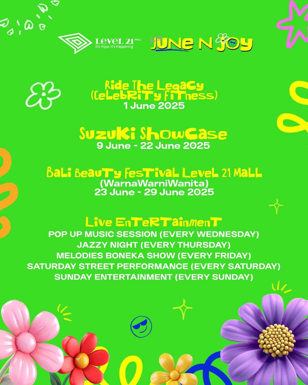 Semarak Ceria Penuh Warna di Level 21 Mall Denpasar, 1 Juni 2025 – Memasuki pertengahan tahun, Level 21 Mall mempersembahkan tema spesial “June N Joy”—sebuah