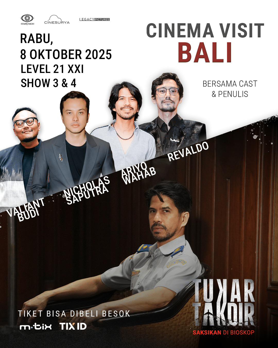 Engken kabare semeton sareng sami? Dumogi becik nggih 🙏 Siap-siap karena akan ada 𝘊𝘪𝘯𝘦𝘮𝘢 𝘝𝘪𝘴𝘪𝘵 bersama pemeran dan sutradara film 𝐓𝐔𝐊𝐀𝐑 𝐓𝐀𝐊𝐃𝐈𝐑 di Bali 🎉