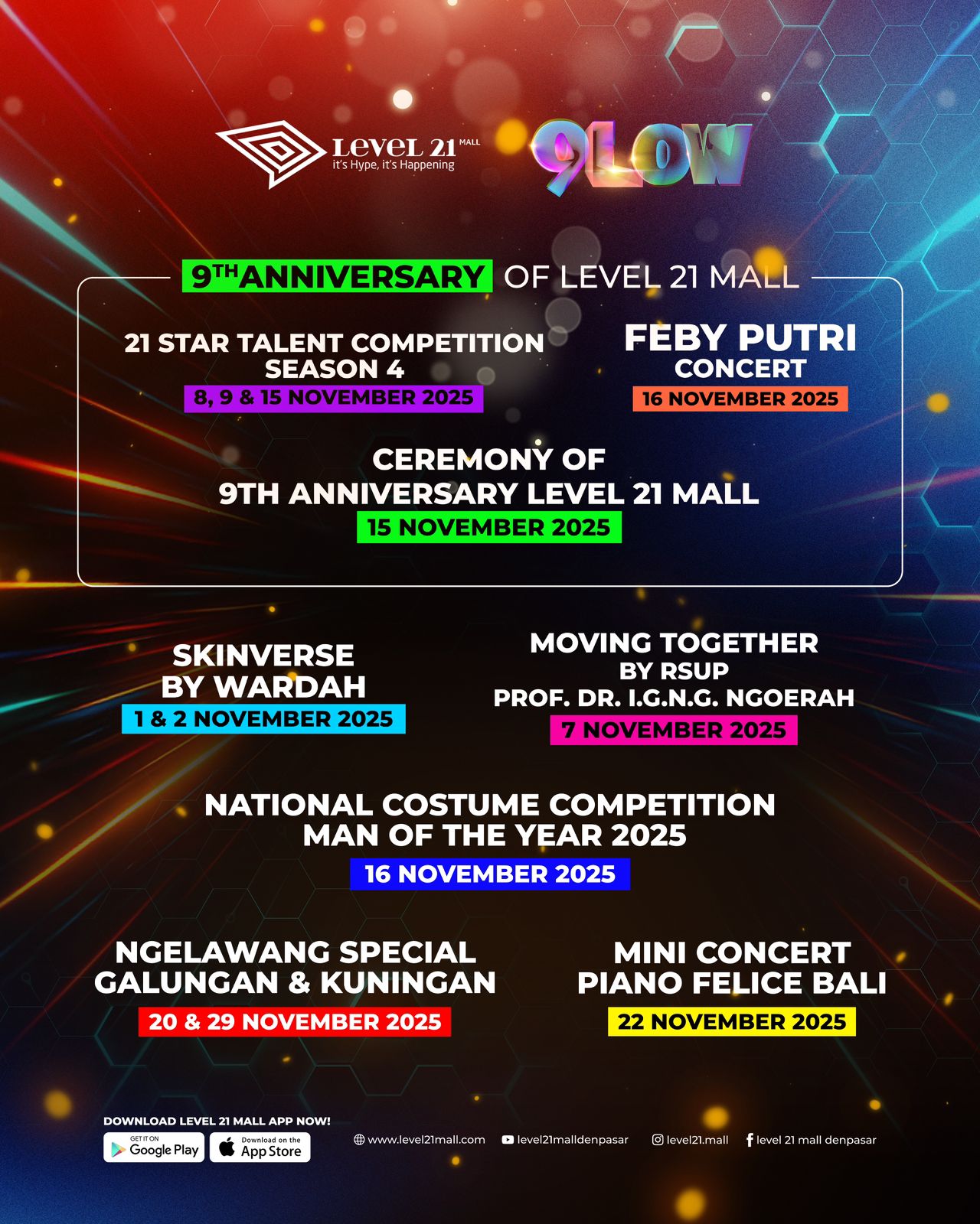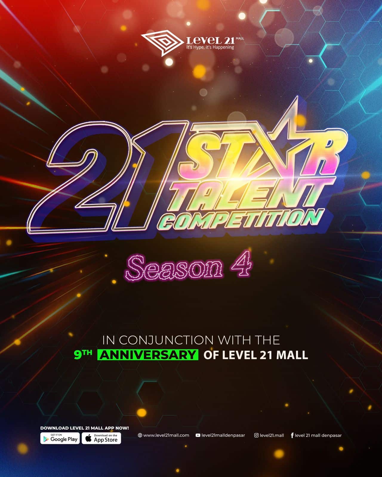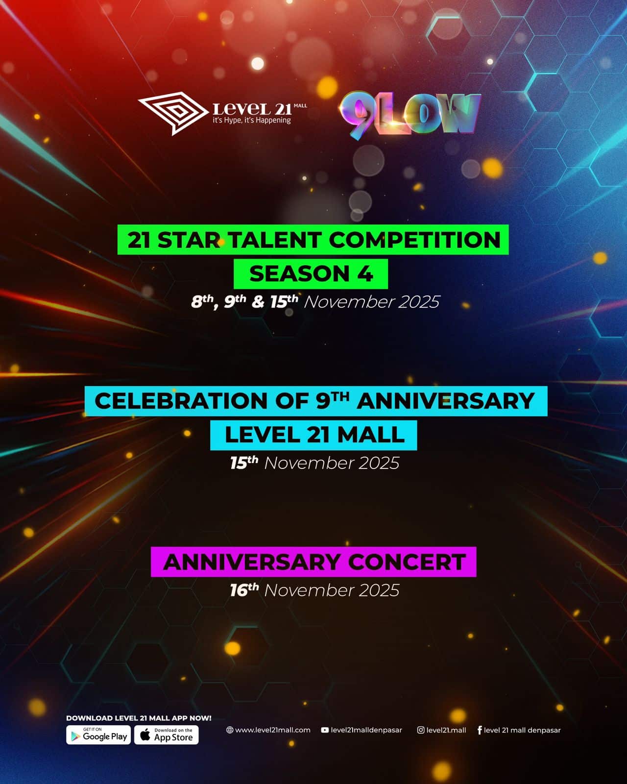 CALLIN’ ALL TALENTED PEOPLE IN BALI📣 Hi Levellers, In conjunction with the #9LOW 9𝘁𝗵 𝗔𝗻𝗻𝗶𝘃𝗲𝗿𝘀𝗮𝗿𝘆 𝗼𝗳 𝗟𝗲𝘃𝗲𝗹 21 𝗠𝗮𝗹𝗹, we proudly present: 🌟21 𝙎𝙏𝘼𝙍 𝙏𝘼𝙇𝙀𝙉𝙏 𝘾𝙊𝙈𝙋𝙀𝙏𝙄𝙏𝙄𝙊𝙉 𝙎𝙀𝘼𝙎𝙊𝙉