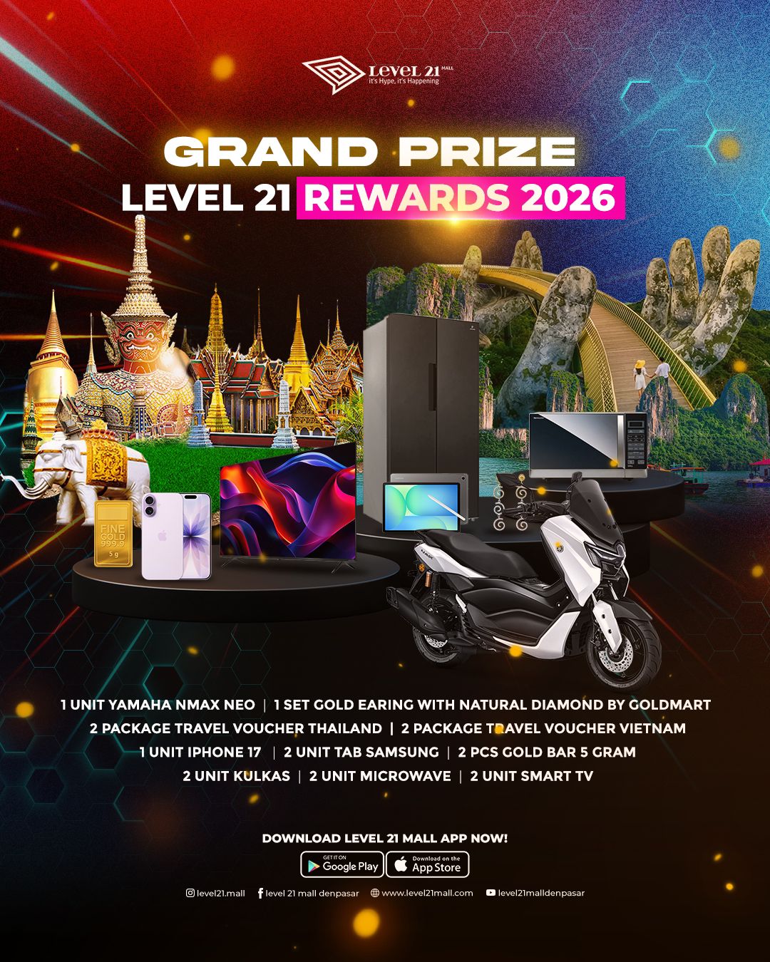 Hi Levellers, Cuma 50.000 kalian bisa berkesempatan menangin total 17 Grand Prize di tahun 2026โผ๏ธ ๐๏ธ 1 ๐จ๐ป๐ถ๐ ๐ฌ๐ฎ๐บ๐ฎ๐ต๐ฎ ๐ก๐ ๐๐ซ